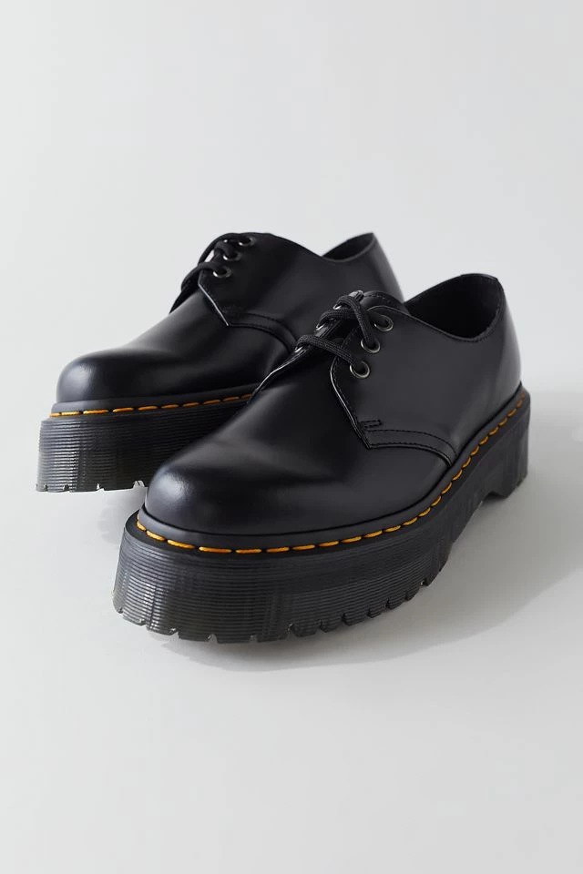 Dr. Martens’ classic 1461 shoe has hit new heights. Built on Doc’s highest platform to date, the 1461 Quad features an empowering rework, built from Polished Smooth Leather and welted in place with unmistakable yellow stitching.