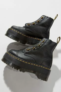 Built to make a scene, these Sinclair boots are welted on a towering Quad Retro Max sole. Crafted from soft Pisa Leather to minimize break-in time, the boots are fitted with a removable jungle zip piece that can be unlaced or left on for two ways to wear. They’re accented with bold yellow laces to match Doc’s iconic yellow welt stitch and heel loop. A slimmer footbed offers a more tapered shape.