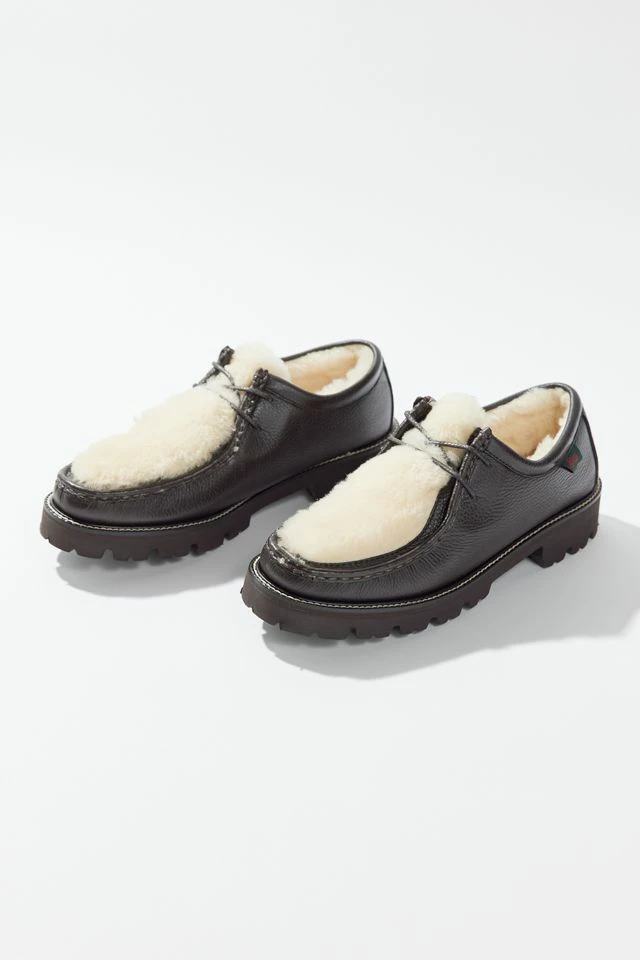 Chunky leather loafers from G.H. Bass with soft shearling fleece at the laced upper. Finished with stompy lug soles.