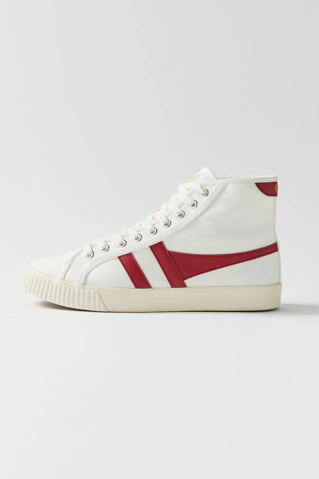 Based on the Gola heritage style from 1975 worn by tennis pro Mark Cox, Tennis High embraces Gola’s long history with racquet sports. This women’s demi-boot plimsoll is a quirky twist on the classic, featuring all the original branding callouts on an off-white canvas upper with a color heel tab and Gola wingflash.