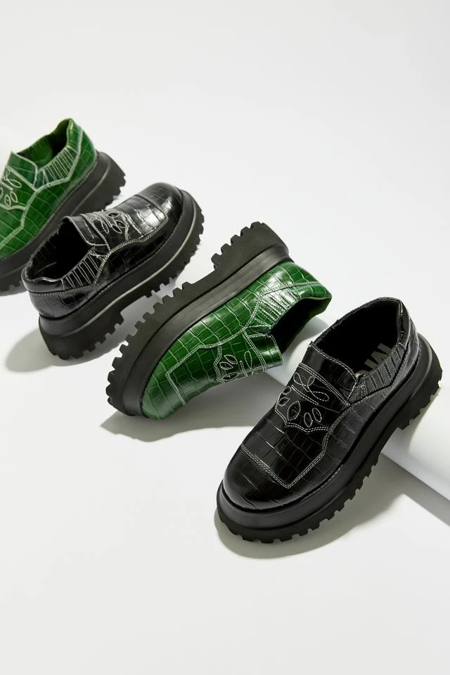 MUTMA’s take on the classic moc loafer, featuring openwork details and contrast stitching for a unique look. Made of embossed leather with a rubber platform. Designed in Uruguay and made in Brazil by MUTMA.
