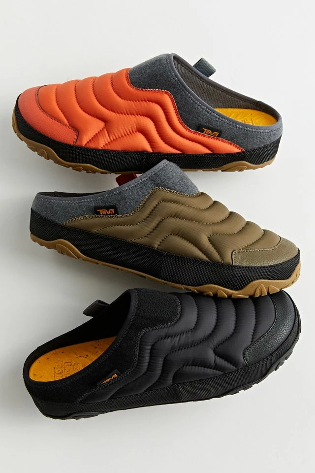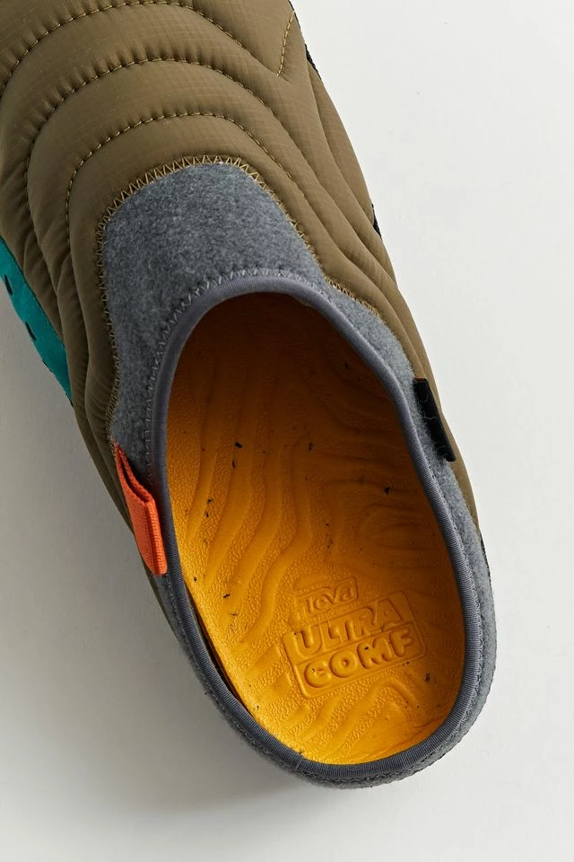 All-terrain sole ReEMBER slip-on shoe by Teva. Quilted upper in a slip-on clog silhouette with a pull tab at the inner foot.