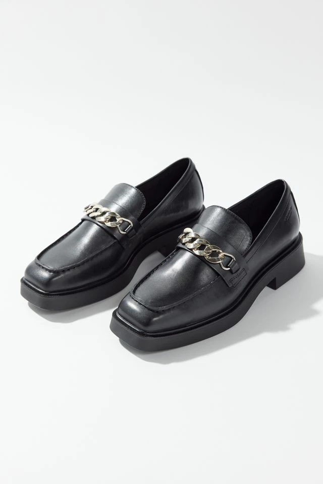 Polished patent leather loafers from our besties at Vagabond Shoemakers. Slip-on with a chunky chain accent and squared-off toe. Finished with a block heel.
