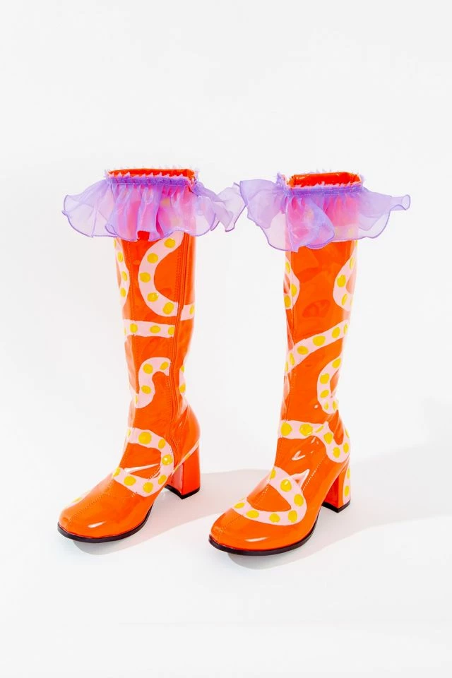 Hand painted vegan go-go boots using professional grade acrylic paint and puffy paint